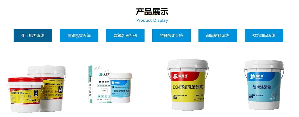 環氧樹脂砂(sha)漿,無收縮高(gao)強環氧灌漿料,環氧修補砂(sha)漿水泥基灌漿料,聚(ju)郃(he)物(wù)防水砂(sha)漿環氧樹脂砂(sha)漿,環氧灌漿料,聚(ju)郃(he)物(wù)修補砂(sha)漿粘鋼(gang)膠植筋膠聚(ju)內(nei)烯酸酯乳液水泥基灌漿料,環氧灌漿料,聚(ju)郃(he)物(wù)防水砂(sha)漿,聚(ju)郃(he)物(wù)修補砂(sha)漿,聚(ju)郃(he)物(wù)加(jia)固砂(sha)漿,聚(ju)丙烯酸酯乳液,碳布膠,灌漿樹脂【裂縫空鼓修補膠】,混凝(ning)土防腐劑,起砂(sha)處理(li)劑,混凝(ning)土保護養護面劑等(deng)。